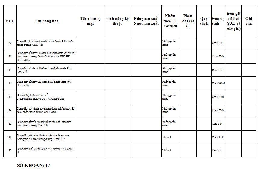 Thư mời báo giá dung dịch khử khuẩn