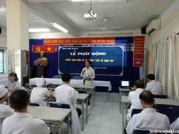 Hưởng ứng cuộc vận động thực hiện BỆNH VIỆN VỆ SINH do Bộ Y tế phát động ngày 26 tháng 12 năm 2014 nhằm giảm thiểu sự lây nhiễm bệnh gây nhiễm khuẩn bệnh viện và bảo đảm sự tiện nghi, thoải mái trong sinh hoạt cho người bệnh, người nhà người bệnh và khách thăm, Khoa Kiểm soát nhiễm khuẩn xây dựng Chương trình Ký cam kết vệ sinh tay năm 2018. Buổi cam kết đã diễn ra vào Thứ ba 11h00 ngày 24/04/2018 tại Hội trường bệnh viện Quận 4 với sự hưởng ứng tích cực của Ban Giám đốc cùng Trưởng, phó khoa, Điều dưỡng trưởng các khoa/phòng và toàn thể nhân viên y tế.