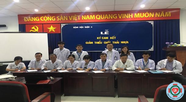 Bệnh viện Quận 4 ký cam kết giảm thiểu chất thải nhựa theo chỉ thị 08/BYT
