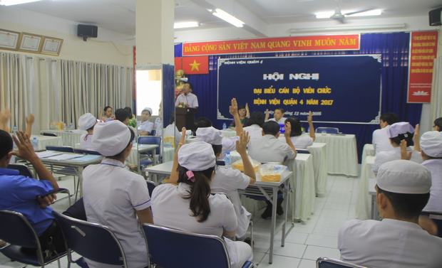 Hội nghị biểu quyết thống nhất 100% thông qua Nghị quyết Hội nghị Đại biểu cán bộ viên chức Bệnh viện Quận 4 năm 2017