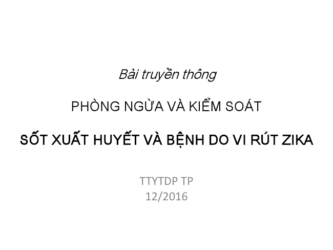 Phòng ngừa và kiểm soát Sốt xuất huyết và bệnh do virus Zika