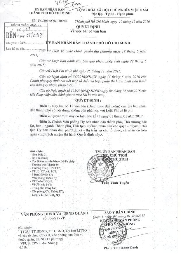Thông báo của Ủy Ban Nhân dân Tp.HCM về việc Bãi bỏ văn bản